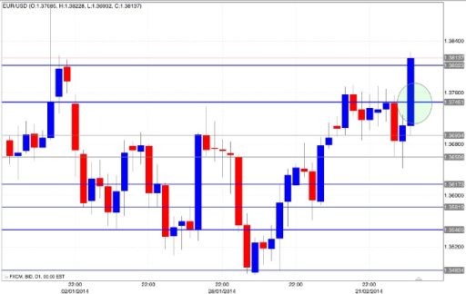 Dopo il superamento della prima quota di resistenza, il tasso di cambio, alimentato dagli acquisti degli investitori, ha raggiunto e superato la successiva quota, dando vita ad un salto di 60 pips, ossia, di ben 600€ se si considera una leva 1:100 ed un investimento di 1.000€.