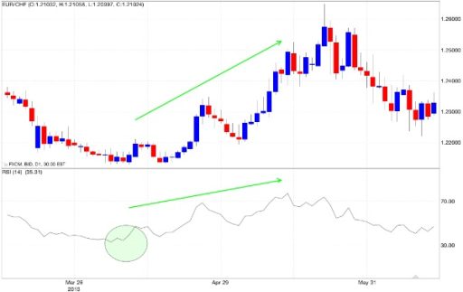 L’oscillatore RSI invece considera sempre lo stesso fattore, vi è una media mobile che oscilla tra due valori: